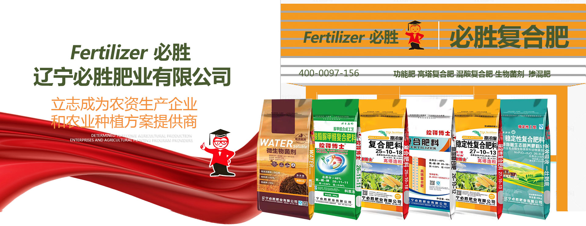 遼寧必勝肥業有限公司成立于1998年。主營高塔復合肥、碳能型脲甲醛緩釋肥、穩定性螯合肥、鋅腐酸型 螯合肥、海藻酸鉀型螯合肥、氨基酸型螯合肥,是東北較大的緩控釋肥與新型螯合肥生產基地,產品遠銷于遼寧、吉林、黑龍江、河北、內蒙古、山東等地,深受廣大用戶的好評。